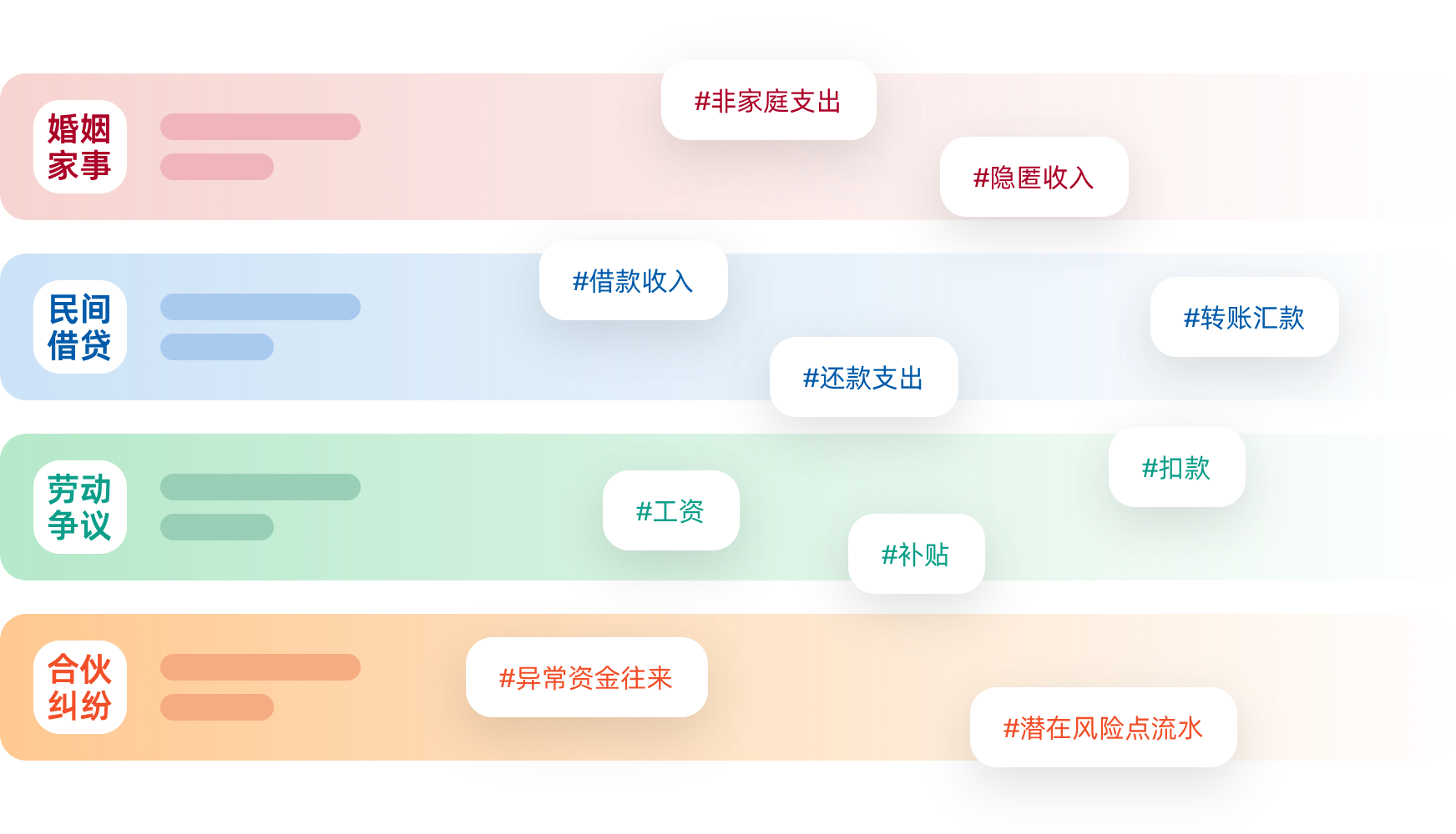 查流水+ 识别异常频率支出、非日常转账、向特定对象的长期或集中打款、隐藏收入线索,帮助把情绪争执先还原为清晰的资金事实。