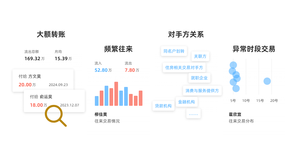 辅助发现“可能需要解释”的交易,让你在沟通、协商、诉讼中更有底气